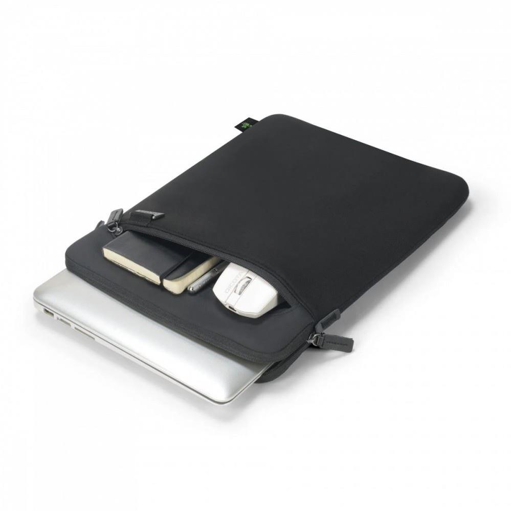 FIVE is DICOTA's premium business line, designed for business people who need more than just a bag. It offers intelligent organisation, enhanced protection and everyday comfort - made from durable, recycled materials for a sustainable and reliable solution for modern business mobility. The Sleeve FIVE is a lightweight, high-quality protective sleeve for notebooks and large tablets. The sleeve is ideal for storing in a larger bag while still allowing quick access to the device. The front compartment offers space for accessories or documents and is secured with a zip.